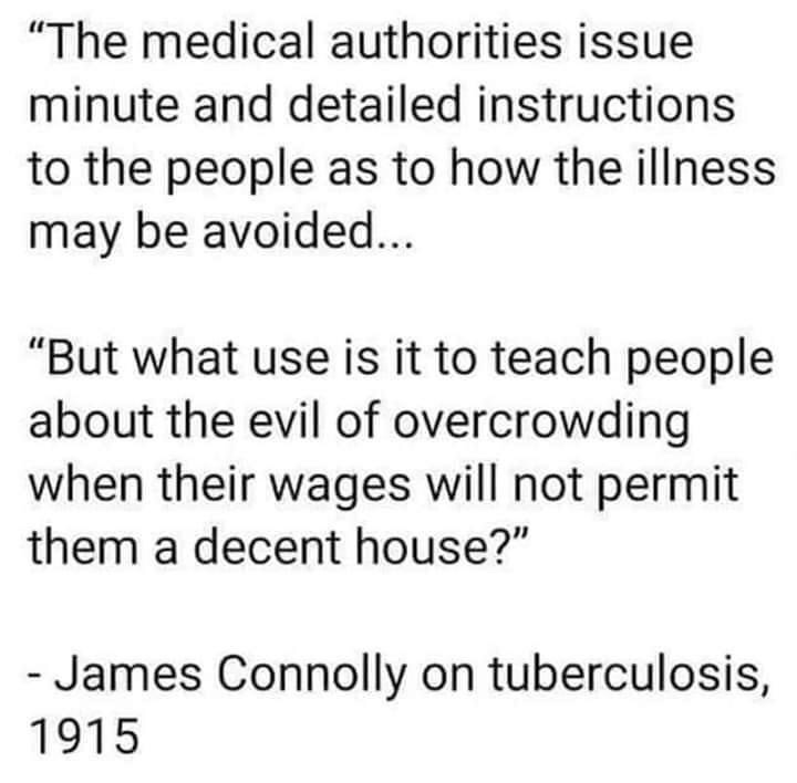 James Connolly in 1915 ridicules “Medical Authorities” advice on combating a TB Epidemic – 105 Years Later, in 2020, Irish “Medical Authorities” Follow the Same Script. It is the same in most other countries.