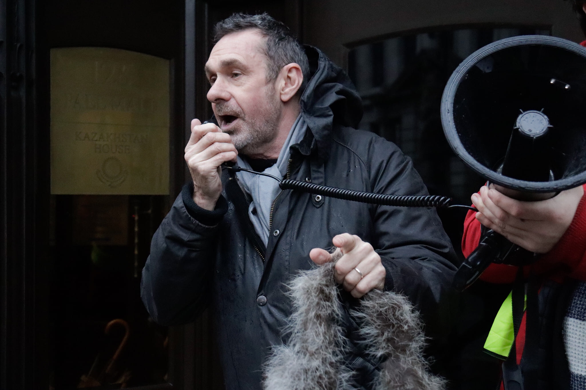 Journalist Paul Mason speaks at a Kazakhstan Solidarity Demonstration at the country’s London Embassy, Saturday January 8 2022