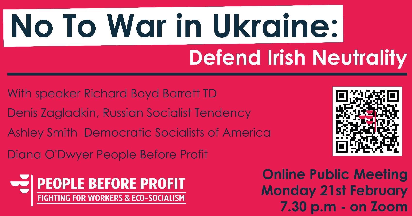 Paul Murphy TD Message : Immediate Withdrawal of Russian Troops from Ukraine; Anti-War Protest, Dáil Éireann, February 24, 5.30pm