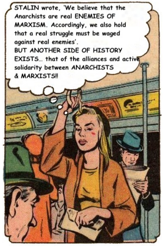 Another sticking point is the bad example of anarchist movements over the course of history, with the most popular case trotted out by Marxists, particularly Trotskyists, being the participation of anarchist organisations in the disastrous “popular front” government in Spain that led the leadership to call on those resisting fascism to lay down their arms and thus leading to catastrophic defeat. It is then too easy to accuse anarchists of being prone to compromise with authority at the crucial moments of struggle, with the “popular front” being an instance of class compromise in politics (as opposed to the “united front” in which we voice our differences, march separately and strike together). But, again, we will find plenty of instances of Marxists, and not only Stalinists, doing the same kind of thing when faced with opportunities and temptations of power, so that isn’t reason to pin all the blame on anarchists as if they never learn from their own history.