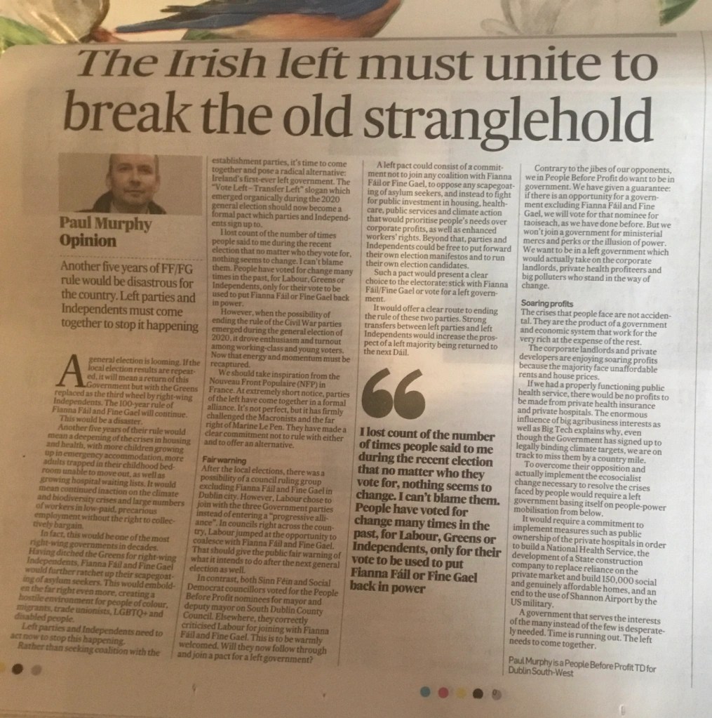 Paul Murphy TD (People Before Before Profit, Dublin South-West) welcomes the success of the NFP in France, and suggests it has positive lessons for Ireland :