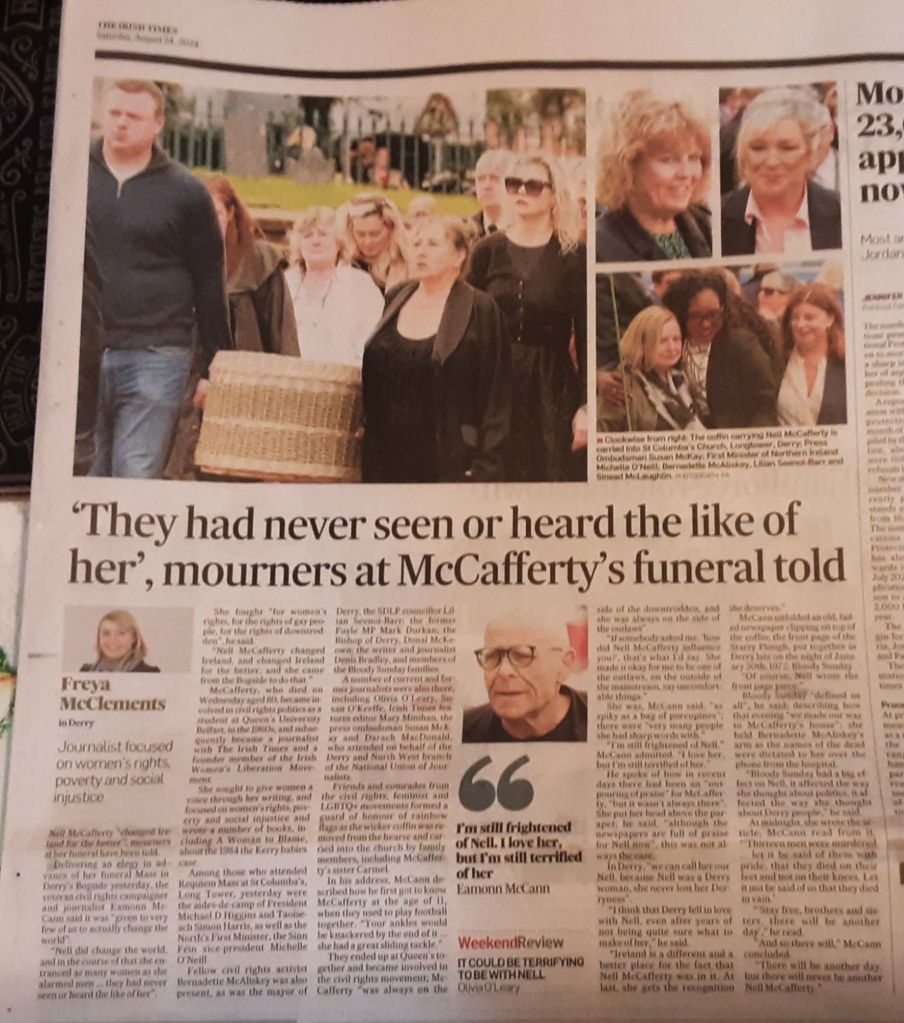“And so there will,” McCann concluded. “There will be another day, but there will never be another Nell McCafferty.”