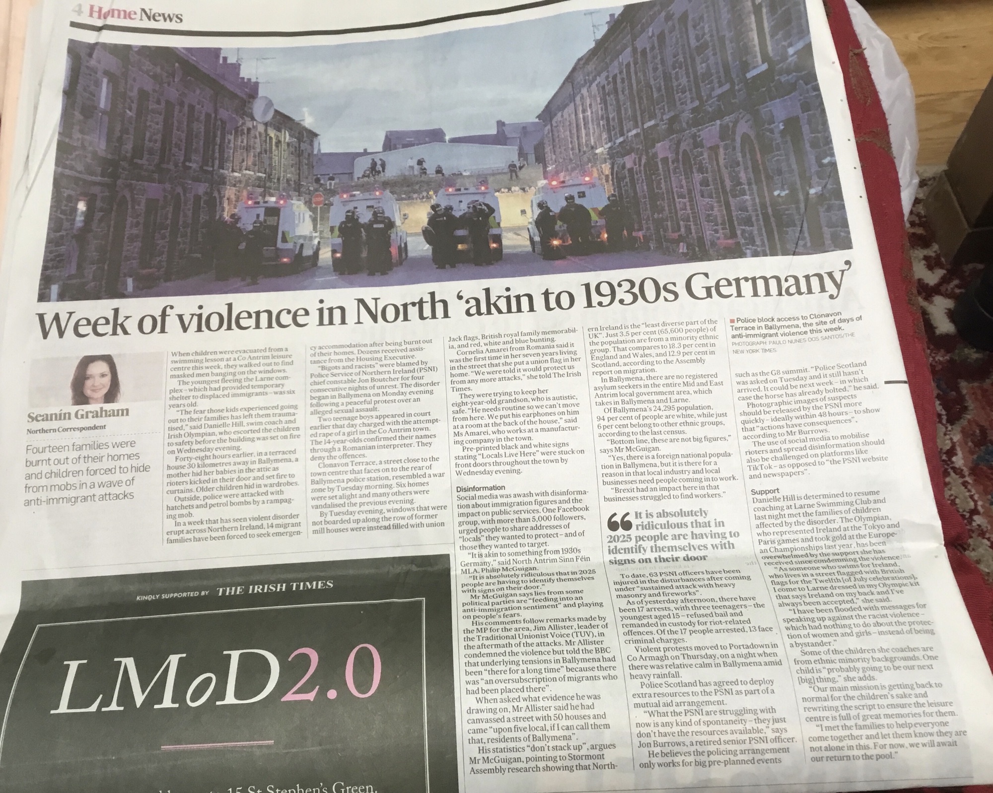 A stark report from the 6 County bit of Ireland headlined “Week of Violence in North “Akin to 1930s Germany”