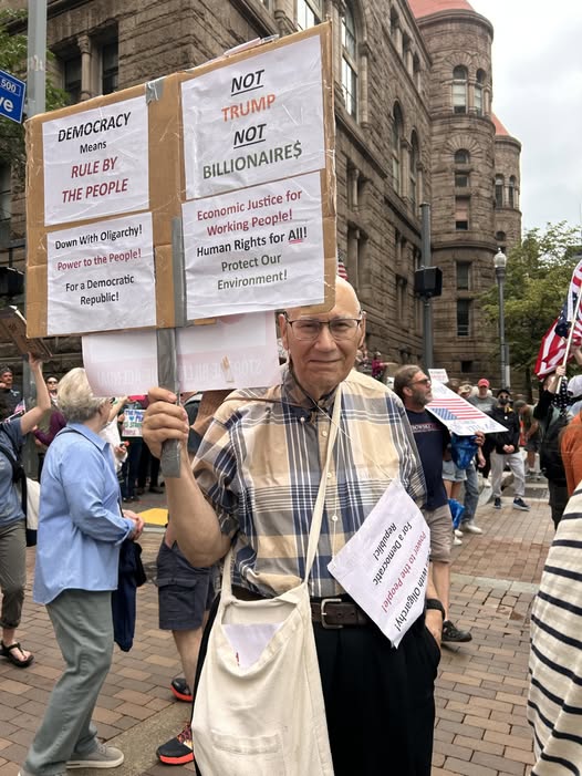 The biggest demonstration of all was the most recent, the “No Kings” demonstration. There were over 10,000 people protesting in Pittsburgh, and millions of people throughout the country: a massive outpouring of anger and rage and ridicule of Trump’s pretensions of being popular and powerful and so forth. People said “No Kings,” with many accusing him of being a fascist, a totalitarian, a dictator. Certainly, he’s authoritarian. There was general agreement on a defence of the principles of the Declaration of Independence and even of the US Constitution, which he’s walking all over.