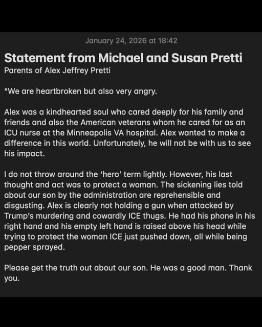 Trump’s federal thugs beat up on His face and his chest Then we heard the gunshots And Alex Pretti lay in the snow, dead Their claim was self defense, sir Just don’t believe your eyes It’s our blood and bones And these whistles and phones Against Miller and Noem’s dirty lies