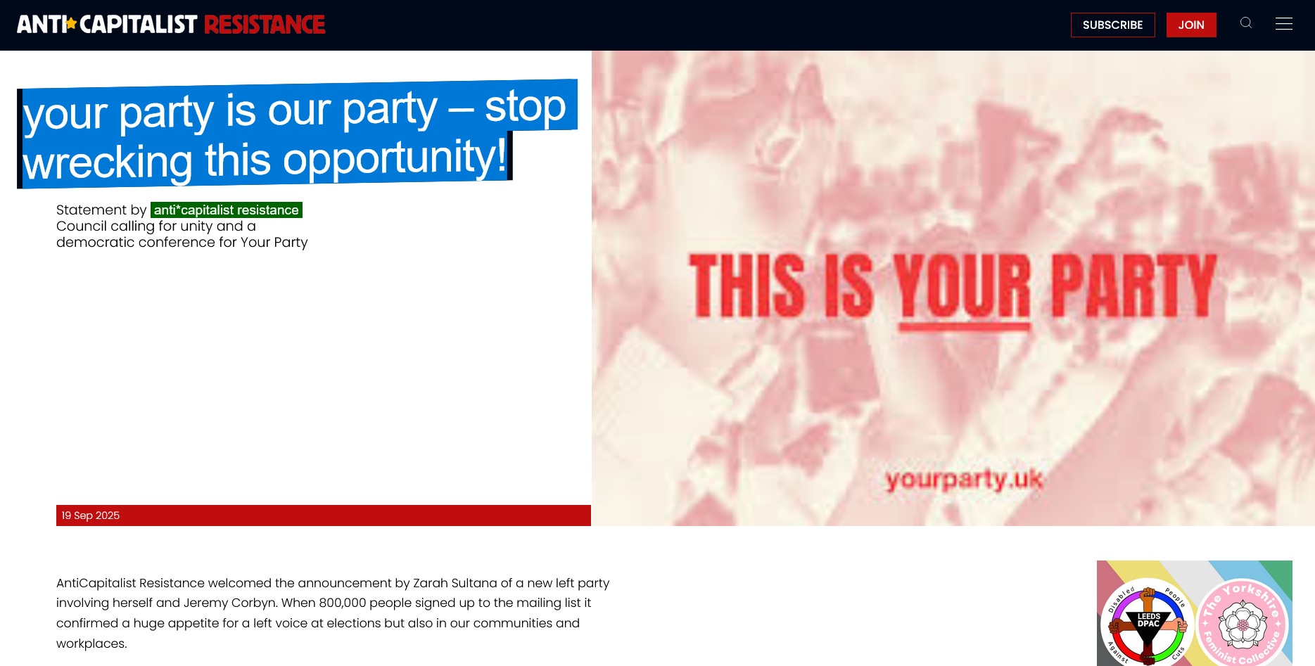 Britain : “Your Party is Our Party – stop wrecking this opportunity!” Anti-Capitalist Resistance Statement