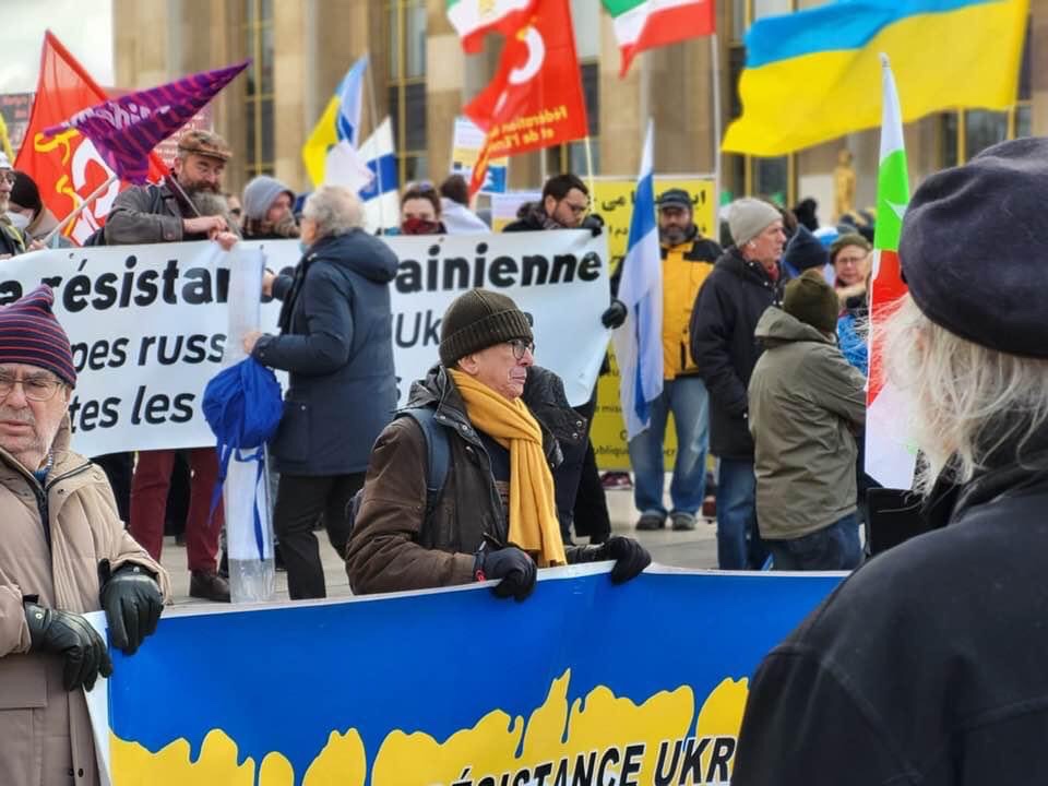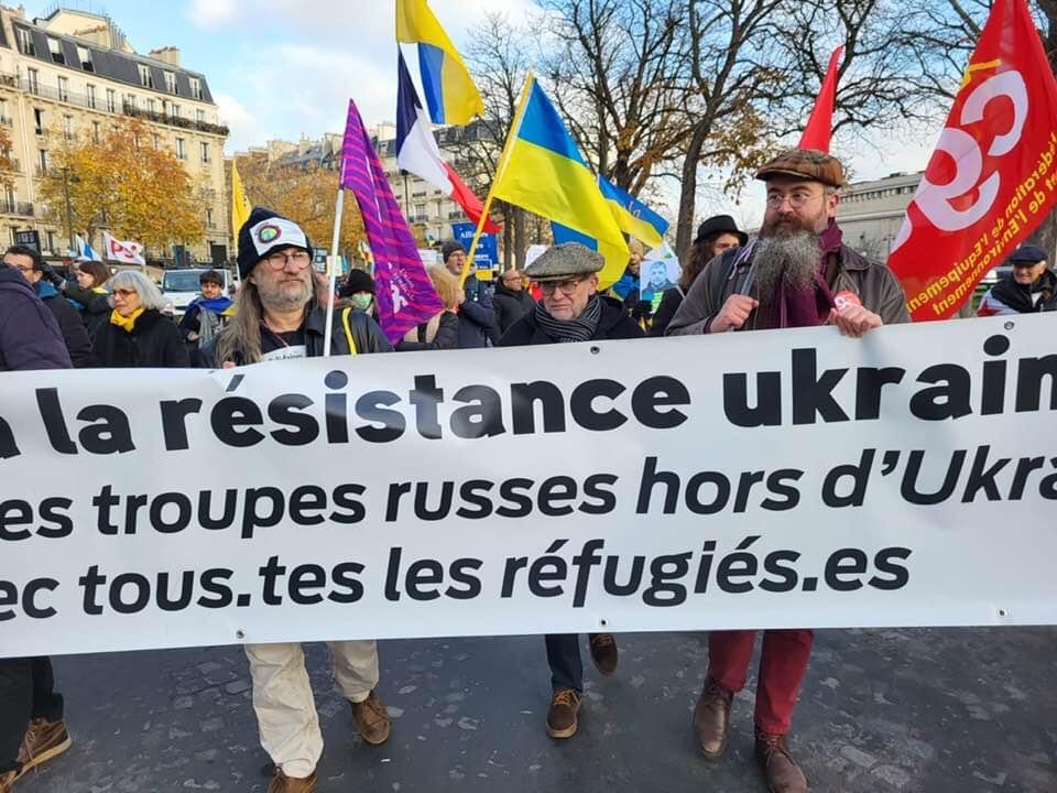 The protest was supported by several French trade unions (CGT, FSU, SUD/Solidaires) the Ukrainian organizations in France, several movements of Russian and Belarusian anti-war activists, a whole host of left-wing organizations and parties, and quite a lot of individual left-wing politicians and intellectuals.