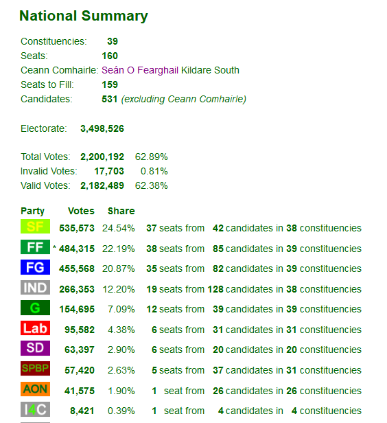 Note, however, that if these results occur at the next Irish general election, the present FFFGGG coalition (FF + FG + Greens + Gombeens) coalition will remain the government.
