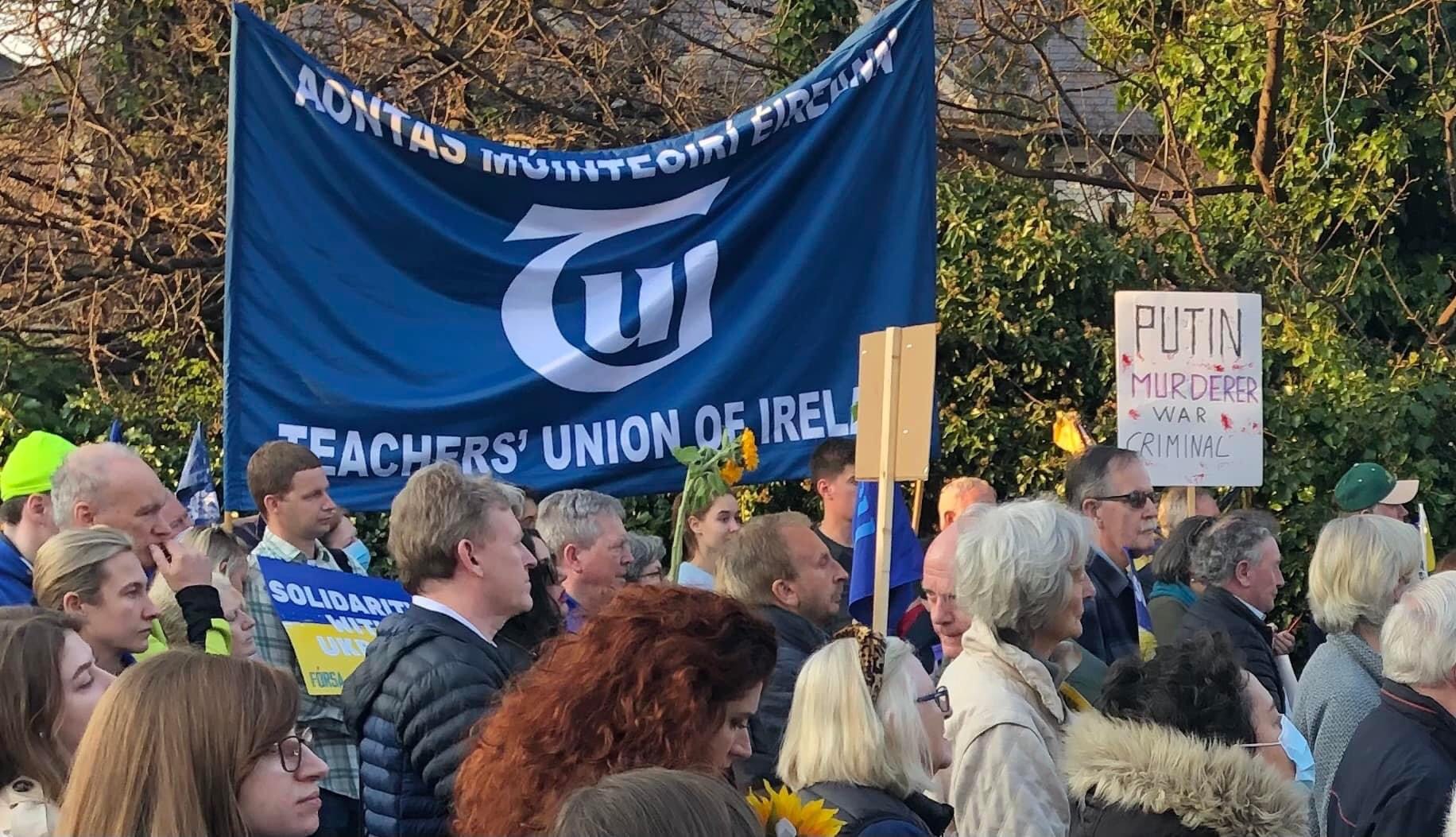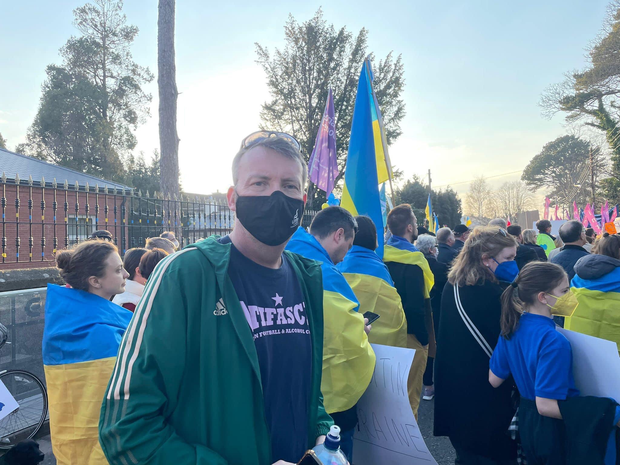 Embassy of Russia, Orwell Road, Dublin 6 : Dublin Council of Trade Unions and many trade unions protest against Russia’s invasion of Ukraine, March 24 2022, 5.00pm. Top Left, Brendan Ogle wearing an anti-fascist T-ShirtRead the rest of this entry »