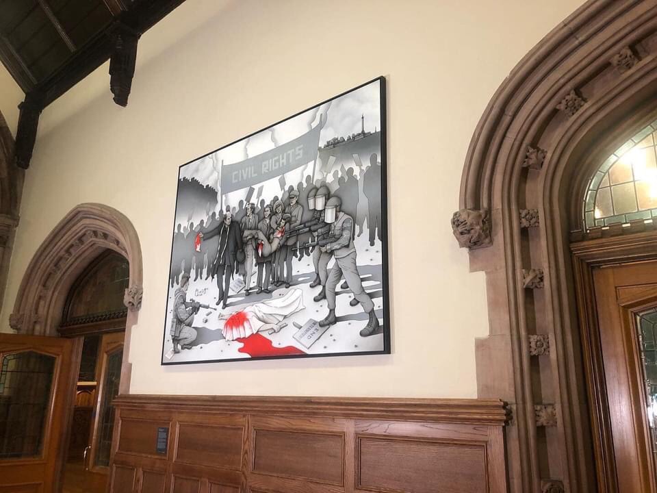 Rachel Ballagh’s photo of Robert Ballagh’s Bloody Sunday Painting, in Derry’s Guild Hall.