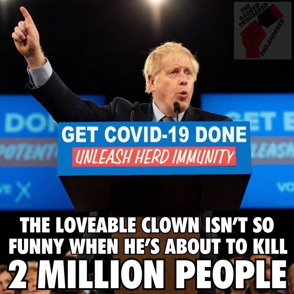 The Johnson/Cummings strategy is basically to let poor people and old people die. No wonder a Daily Telegraph journalist said that the virus might mean ‘an economically beneficial cull of over-80s’.[4]