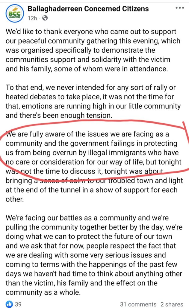 A highly-respected human rights campaigner Wendy Lyon draws our attention to a public statement issued by the Sinn Féin spokesperson on Integration Claire Kerrane TD (Ropscommon-Galway). Kerrane’s home town is Ballaghaderreen, which has recently been the target of sinister anti-immigrant racist mobilisations.